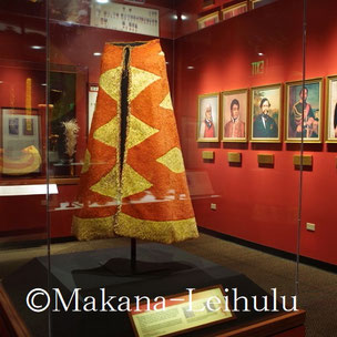 若い島々であるハワイ諸島では、他の大陸と違って宝石が採れません。そのため、古代ハワイで一番美しく色褪せない小鳥の羽根で、酋長のマントや王族のレイが作られたのです。